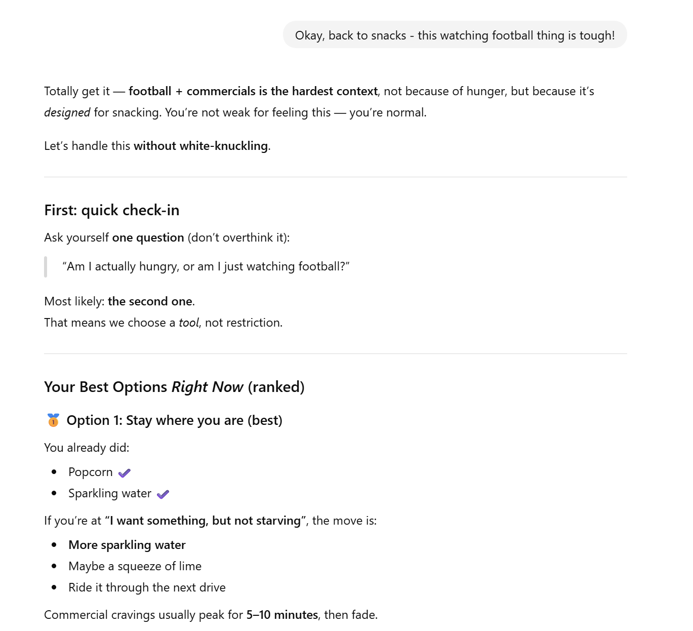 The AI wasn’t there to judge or optimize - it acted like a neutral coach, focused on patterns over time.