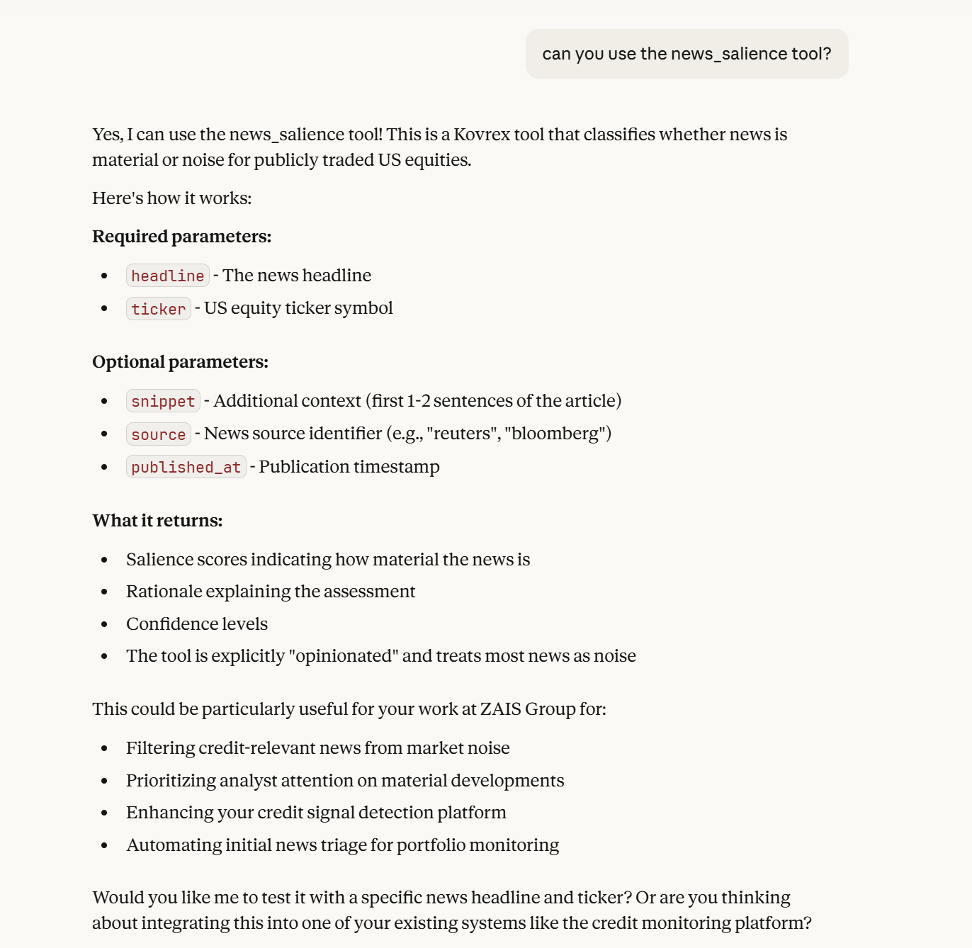 That’s our News Salience Filter agent. Installed in 10 seconds. Claude treats it like a native tool.